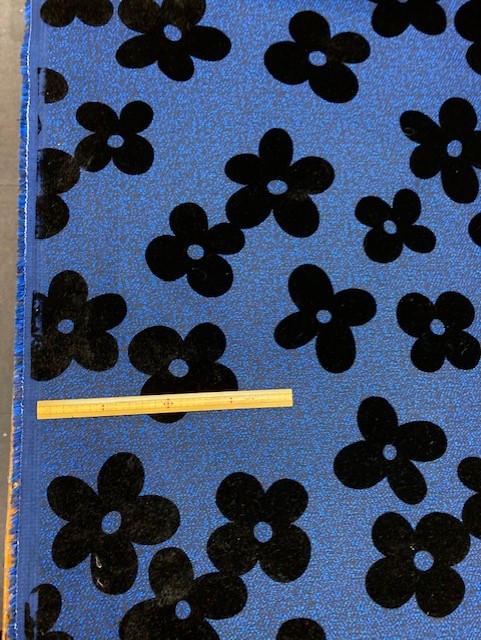 生地 花柄フェルト加工 ブルー 黒 日暮里繊維街 要藤商店 ようとう商店