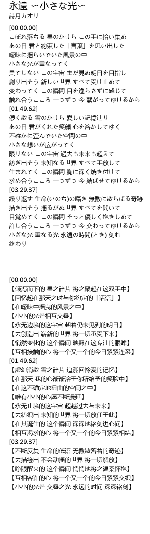 永遠 小さな光 Yong Yuan Xiao Guang Lyrics Follow Lyrics